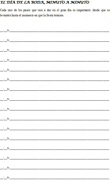 Descárgate GRATIS la plantilla haciendo clic aquí: Plantilla del gran dia, minuto a minuto